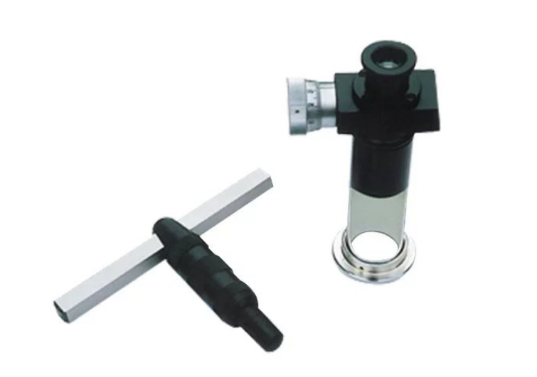 仪器主要由支架、条形硬度块、钢球和读数显微镜组成,试验时用锤子敲击支架顶部,钢球会同时压入试样和硬度块中,在试样和硬度块上留下压痕,两个压痕具有一定的比例关系,分别测出两个压痕直径,查表,就可得到试样的布氏硬度值。